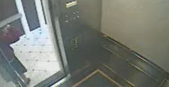 在那里站了大约30秒后,她又突然双手抱着头回到电梯里,并且按下所有不同楼层的按钮。