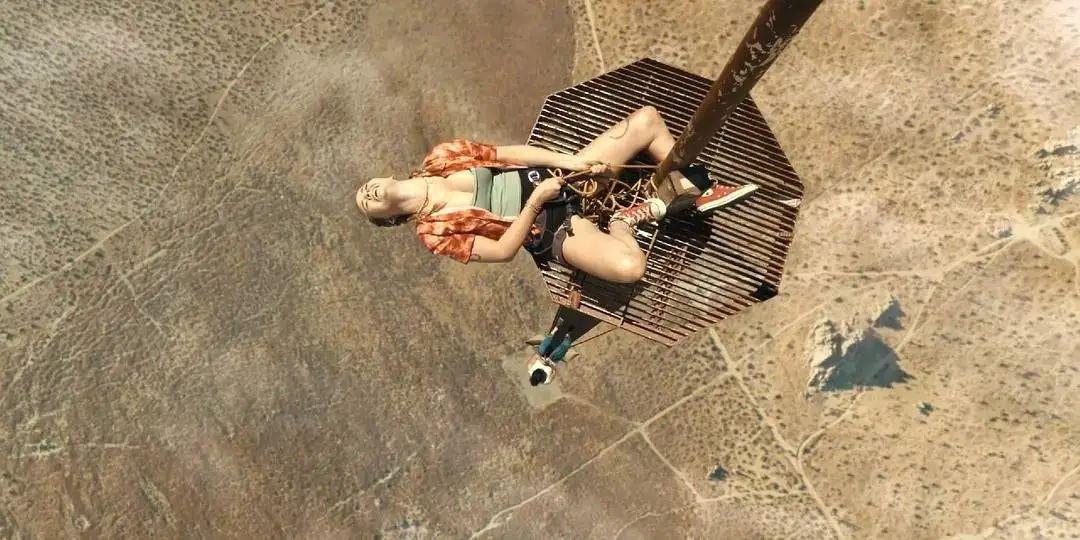 《坠落》百分之八十的戏份都集中在高塔顶端1.5米见方的小平台上,而这座600米的高塔并非电脑特效,是真实存在的。