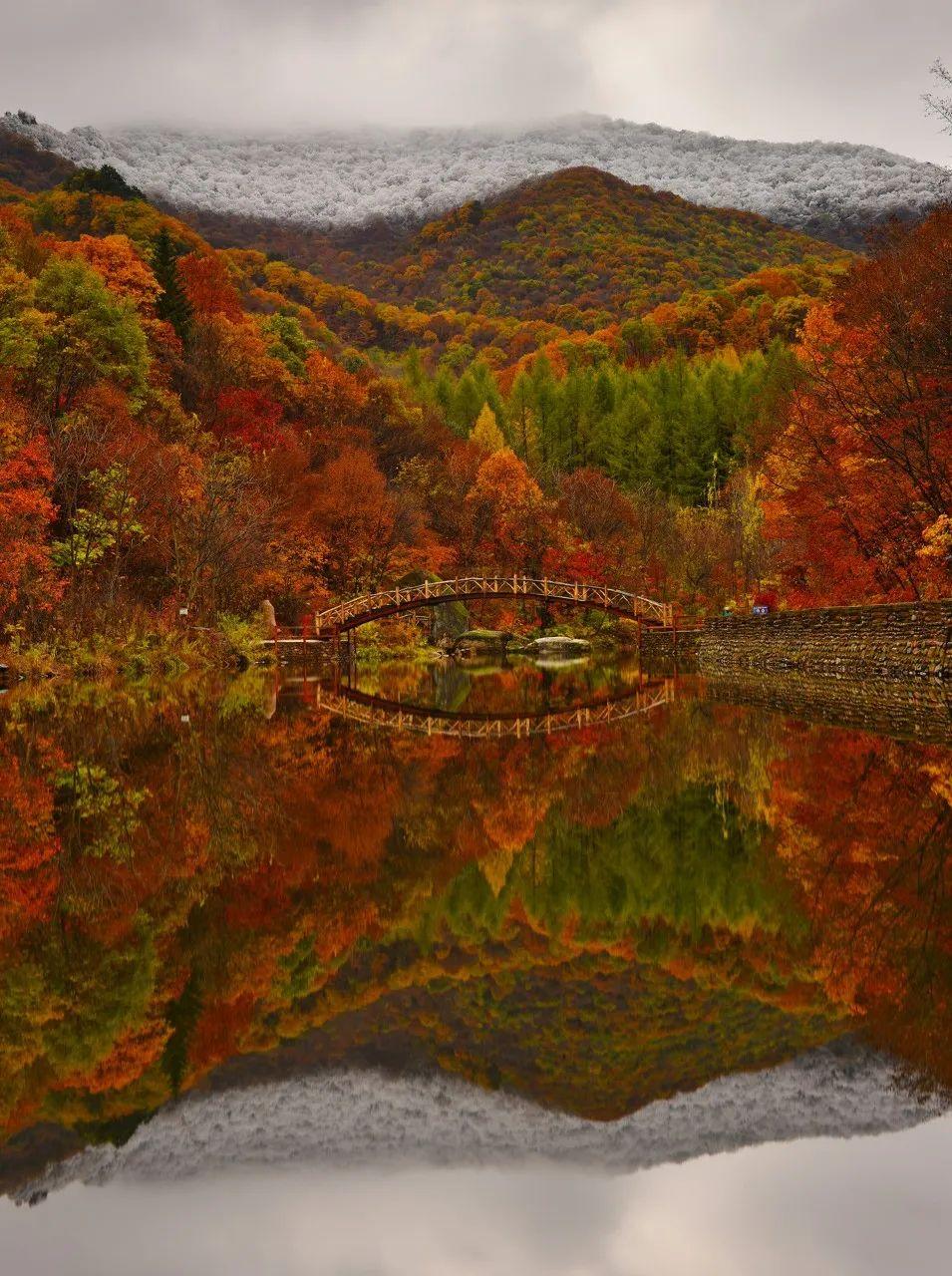 关门山有五美:山美、水美、花美、云美、树美。春夏苍翠葱郁,冬日素白静美,只有到了秋日,才是它真正出圈的时刻。