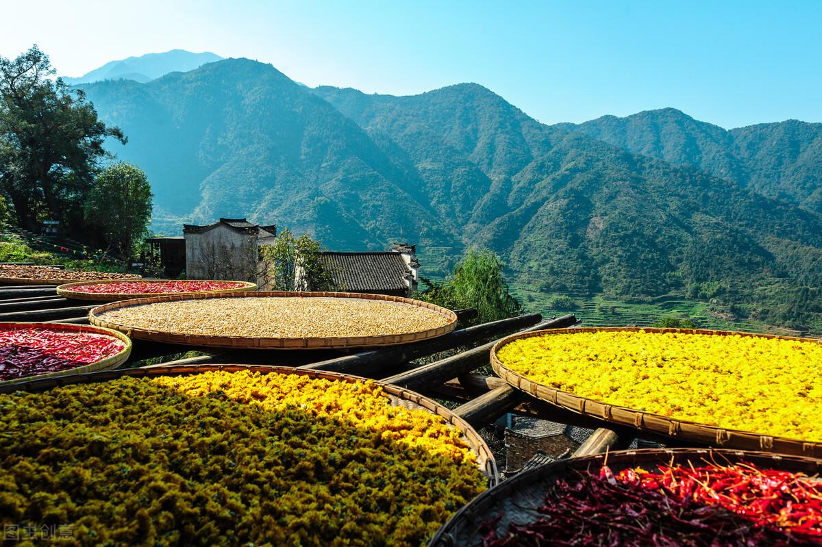 篁岭最美还属于秋季,晾架上铺上火红的辣椒️、金黄的高山黄菊或者玉米、橙色的柿子,一个中国最美的秋景就展现在你的眼前。