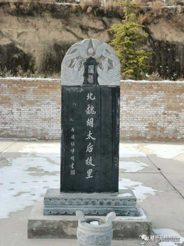祠堂前左边碑上刻有《太后祠修建碑记》,正面是胡氏后人胡伟明先生题写的“北魏胡太后故里”七个大字,背面是碑文。右边立有《功德碑》。